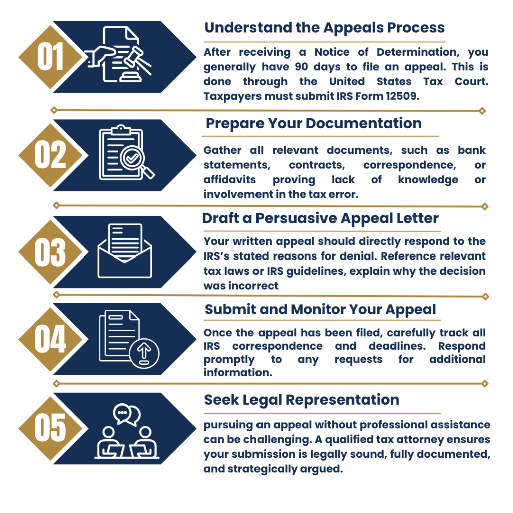 When the IRS denies your request for relief, it involves a combination of understanding the reasons and knowing how to respond effectively. Here are some simple tips to guide you: